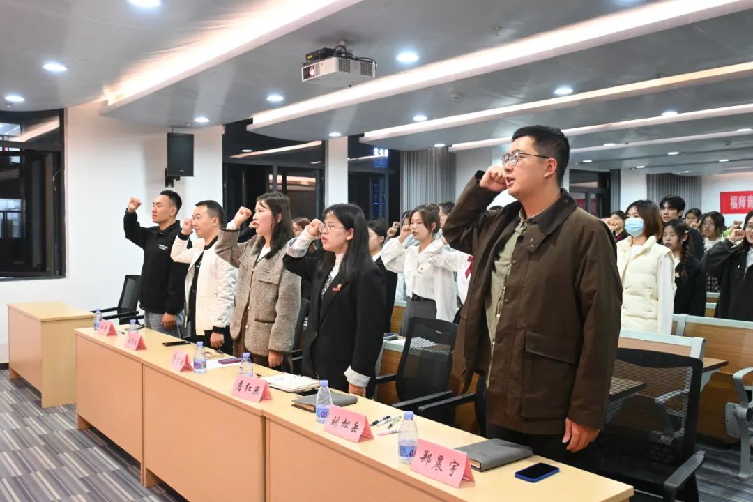 活动尾声,与会全体同学在辅导员们的带领下再次重温入团誓词,奏唱国际歌,激励大家回望初心,继续坚定马克思主义信仰、对中国特色社会主义的信念、对中华民族伟大复兴中国梦的信心,到人民群众中去,到新时代新天地中去,让理想信念在创业奋斗中升华,让青春在创新创造中闪光。