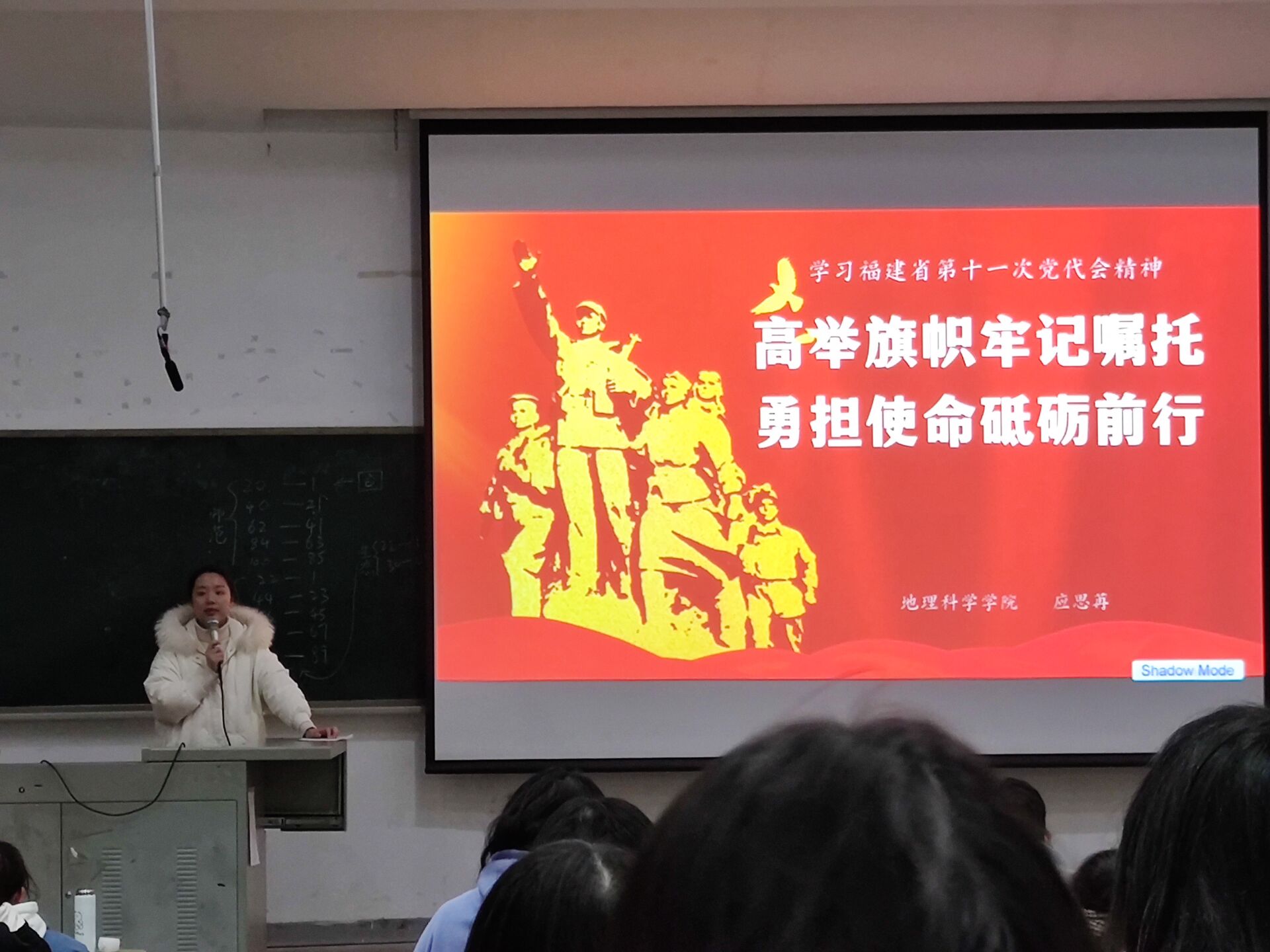 12月27日晚,我院2021级全体同学于知明2-101参加了有关福建省第十一次党代会内容的宣传教育,本次活动由我院2021级辅导员应思苒召开并主持。