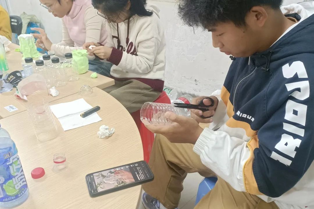 在一期活动中,部门成员带领志愿者们前往学生公寓,以边收集空塑料瓶边进行环保科普的方式让参与者了解塑料垃圾污染的严重性及危害,普及环保小知识,并用贴纸收集“瓶”行者们的感想与留言。扫楼结束后,收集到的部分塑料瓶通过协会成员的巧妙构思、精心改装,变为笔筒、水杯、小夜灯等实用物件,让原本废弃的空瓶再次拥有了使用价值,实现了“变废为宝”。
