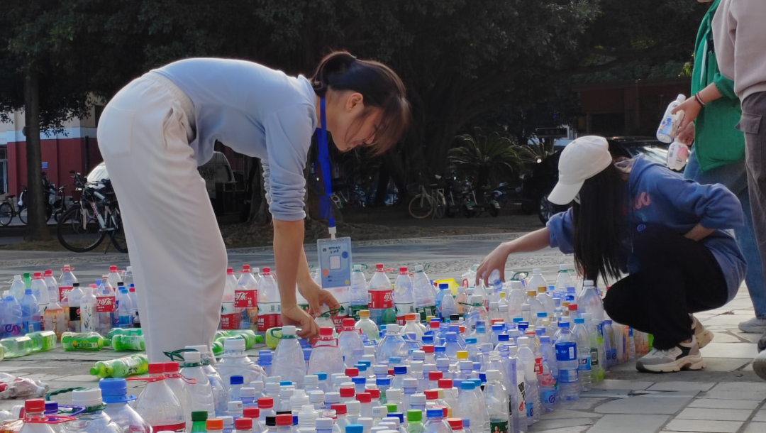 在共青团广场举行的二期活动中,广大师生携带塑料空瓶前往帐篷设置点兑换小奖品、抽取留言,协会干事则通过环保小游戏宣传环保知识。活动期间,同学们热情参与,气氛活跃。活动尾声,协会成员将收集到的瓶子摆成“漂流瓶2023”的图案,并进行合影留念。活动结束后,对空瓶进行合理回收利用。