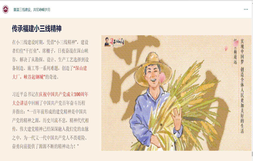 此次团立项活动不仅锻炼了支部成员历史与地理结合的思维能力,而且在梳理和了解福建经济建设进程中总结、借鉴了历史经验,有利于加深党史学习,担起弘扬小三线建设精神的时代使命。