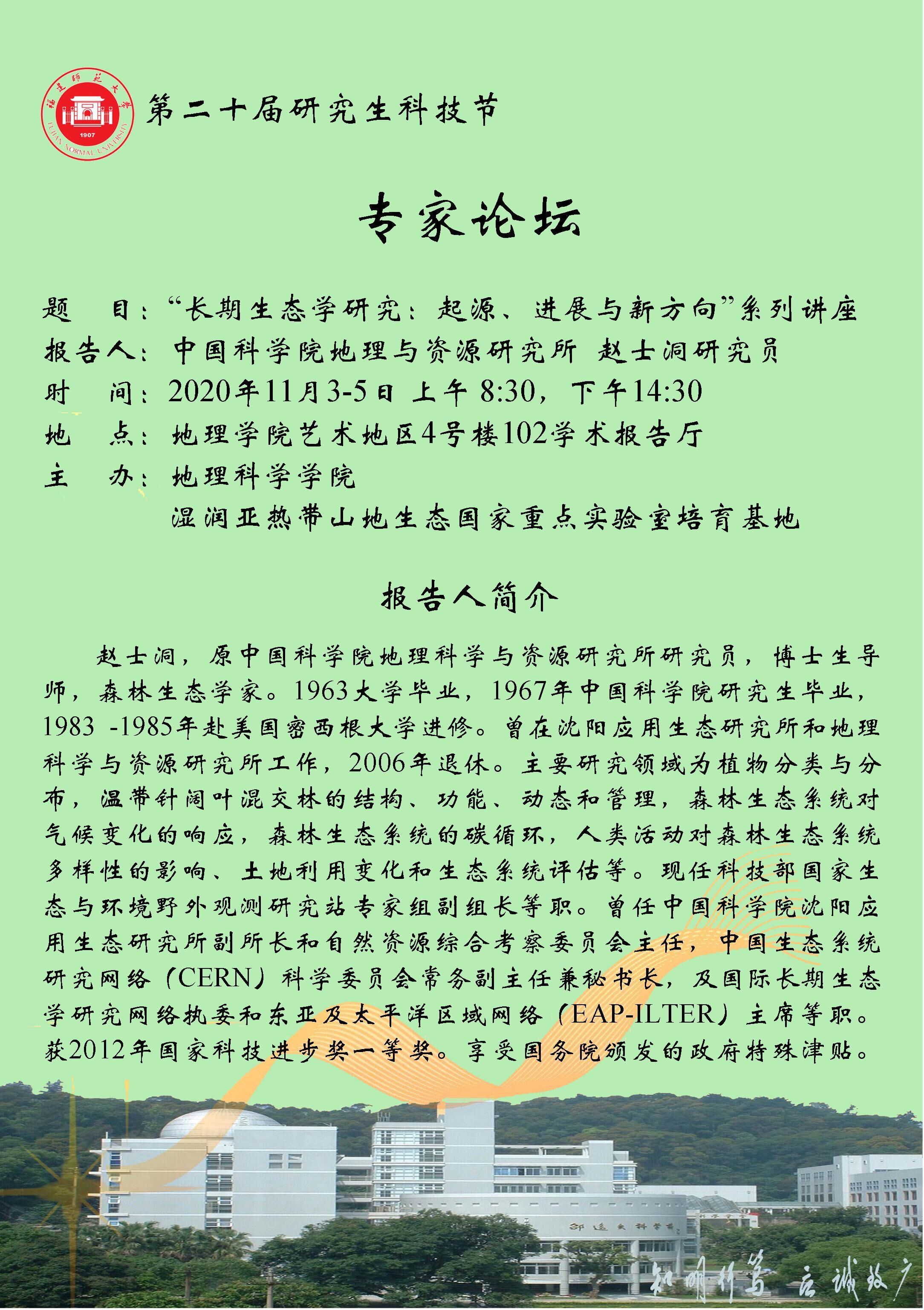 2020年11月3-5日 “长期生态学研究:起源、进展与新方向”系列讲座