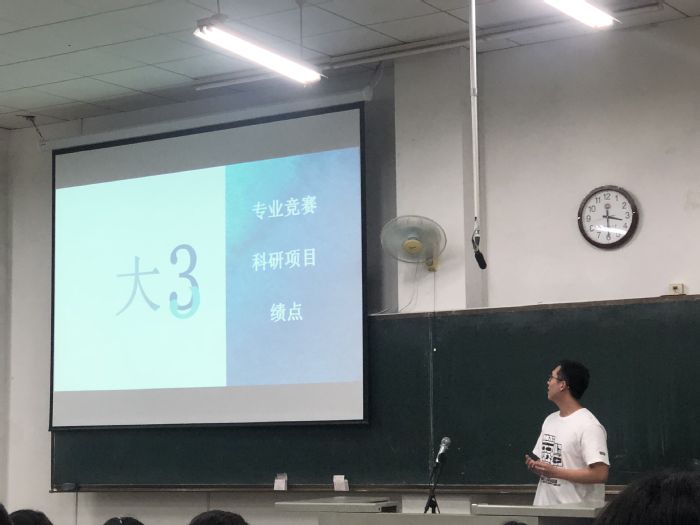 黄老师首先对考研的宏观趋势进行了分析,对近年来考研人数和招考趋势,进行了利弊解答,结合一些具体例子为同学们指明了考试方向;紧接着提醒同学们要关注报考环节,并且详细的说明了报名的步骤和重要时间节点,就考研考试科目分数进行了分析,为同学们梳理了考研的时间线;接着针对专业与院校选择进行了指导,提醒同学们志愿大于分数,配度,与此同时着重谈到复试,提醒各位同学可以多关注、各大高校的差额比、保研比与不同专业与学校匹性。关于考研收集信息的途径,除了网上较广泛、略片面的搜集,黄老师认为最有效的途径是求助报考院校的师哥师姐;在巩固知识备战考研方面,黄老师强调了英语和数学的重要性。在讲座的尾声,黄老师祝愿同学金马提名,过程中黄老师风趣的语言、看门见山的讲述风格、清晰的条理,不仅舒缓了同学们的压力,而且在帮助同学们增强自信心的同时,提高同学们对考研的进一步认识,赢得了同学们阵阵热烈的掌声。
