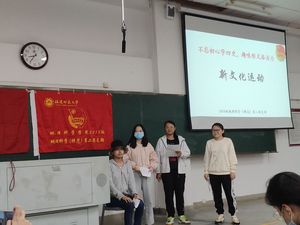 2020年11月8日晚上,地理科学学院2018级地理科学(师范)第二团支部在立诚1-215教室举办了以“不忘初心学四史,趣味形式添活力”为主题的团立项活动。