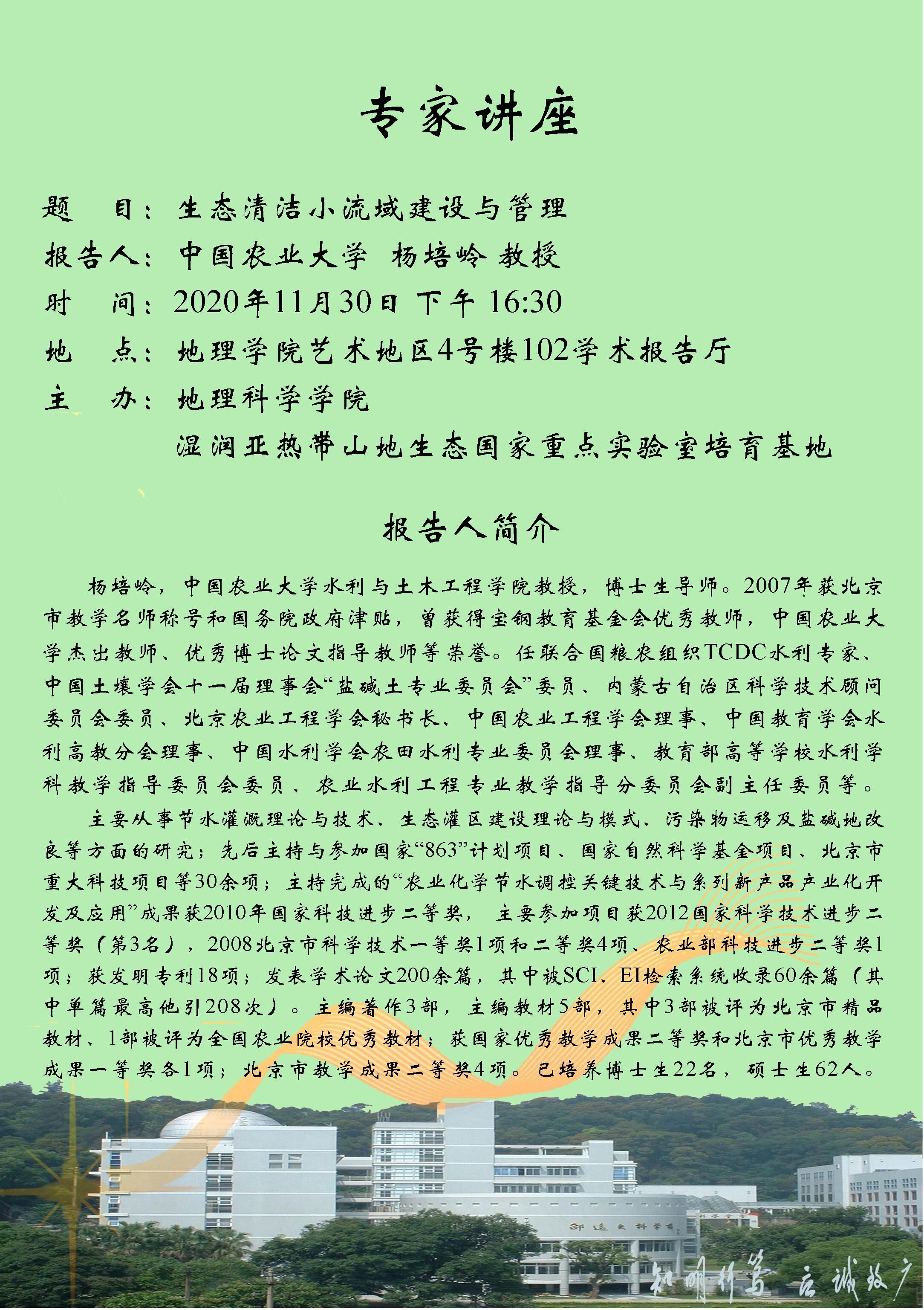 2020年11月30日“生态清洁小流域建设与管理”学术讲座